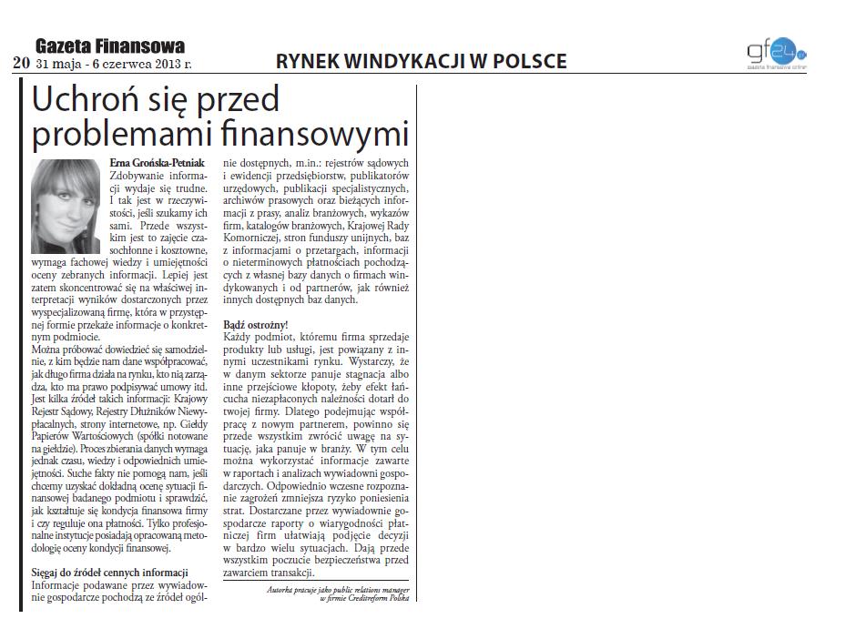 Gazeta Finansowa-Ranking Creditreform Liderzy Wiarygodności 22.02.2013